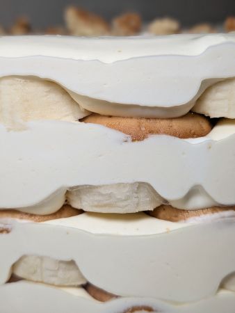 This is not vegan banana pudding; this is Magnolia Bakery's banana pudding, made vegan. While other similarly named recipes may include coconut milk, tofu, and/or turmeric, mine preserves the ingredients, techniques, and experience of making and consuming this famous dish.